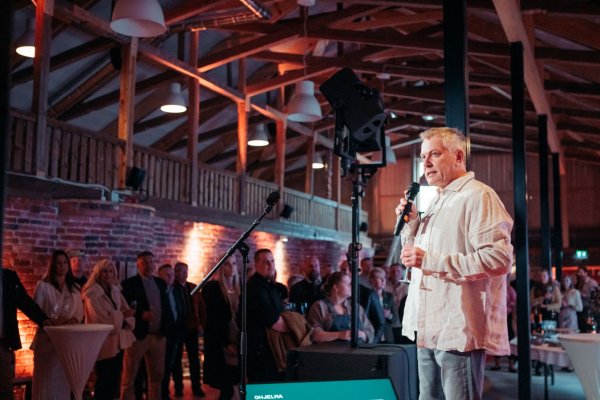 Kari Järvenpää pitämässä Terwan avajaispuhetta.